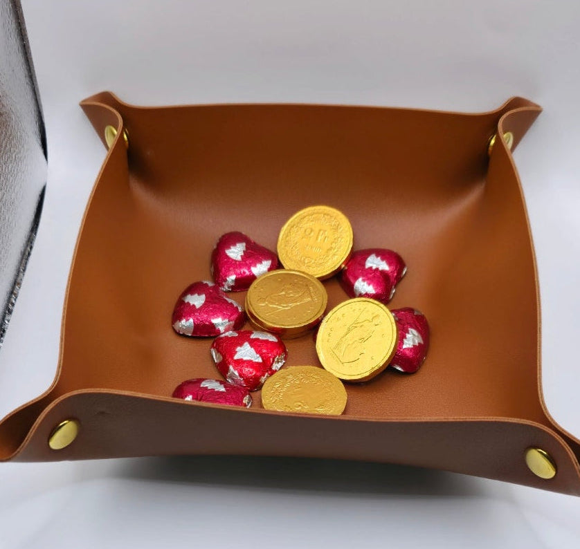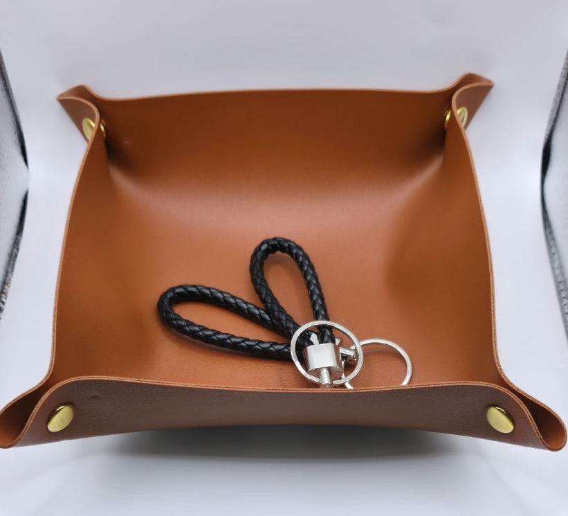 💫Mais do que um simples acessório, um detalhe de classe. Este vide-poche (esvazia-bolsos) é o aliado perfeito para quem gosta de manter o espaço organizado com um toque artesanal. O contraste dos botões de pressão dourados com a textura do couro eleva qualquer móvel.